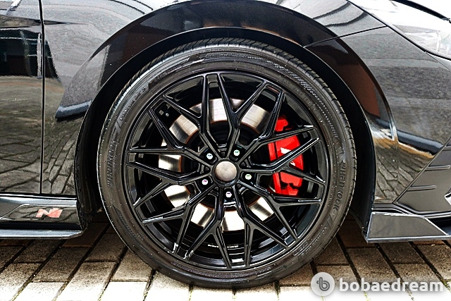 아반떼 N의 보닛 아래에는 280마력과 40.0kg.m의 토크를 내는 2.0L 터보 엔진이 조합되며 6단 수동, 8단 DCT를