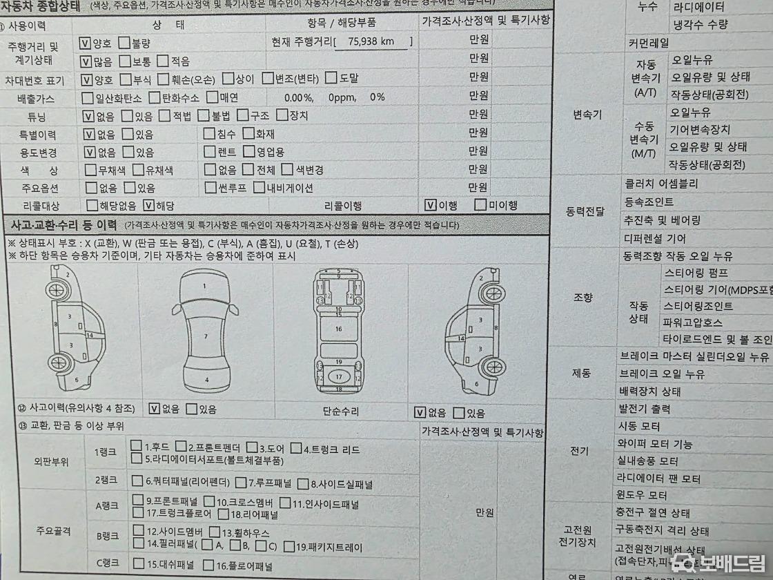 * 보험 사고 이력 /내차0 타차 0 / 100% 순제칠