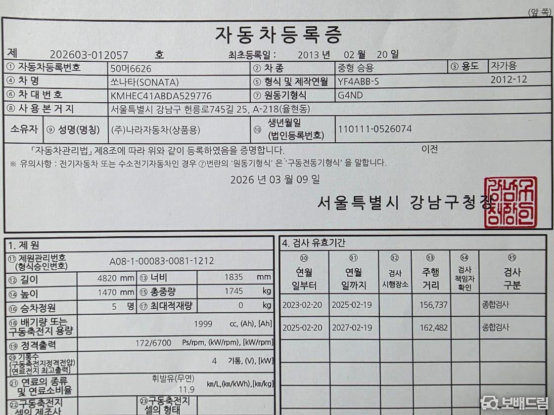 실차확인은 보배드림 직원이 직접 촬영 한 차량입니다.