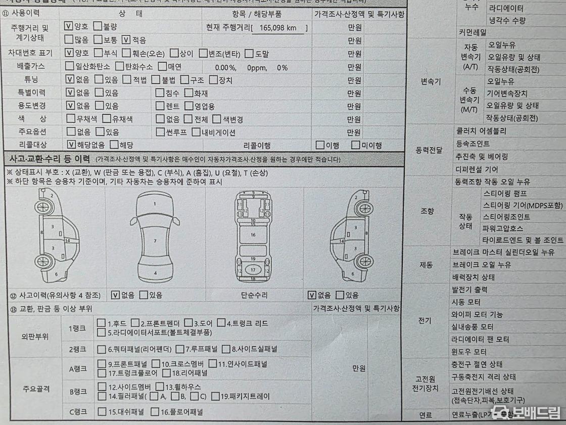 성능지는 해당 매물의 성능점검 기록부의 이미지 입니다.